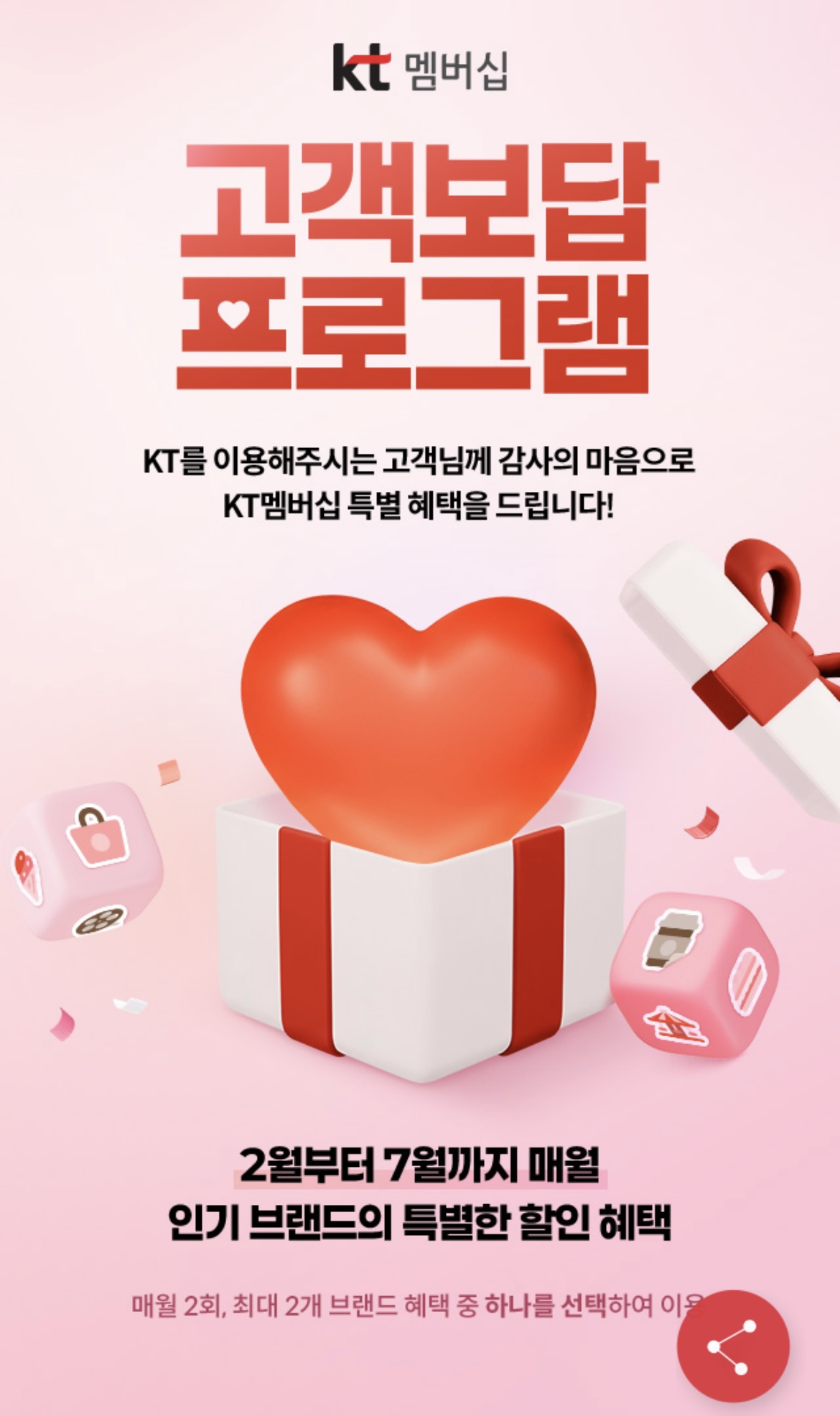 2월부터 7월까지 KT에서 고객 보답 프로그램으로